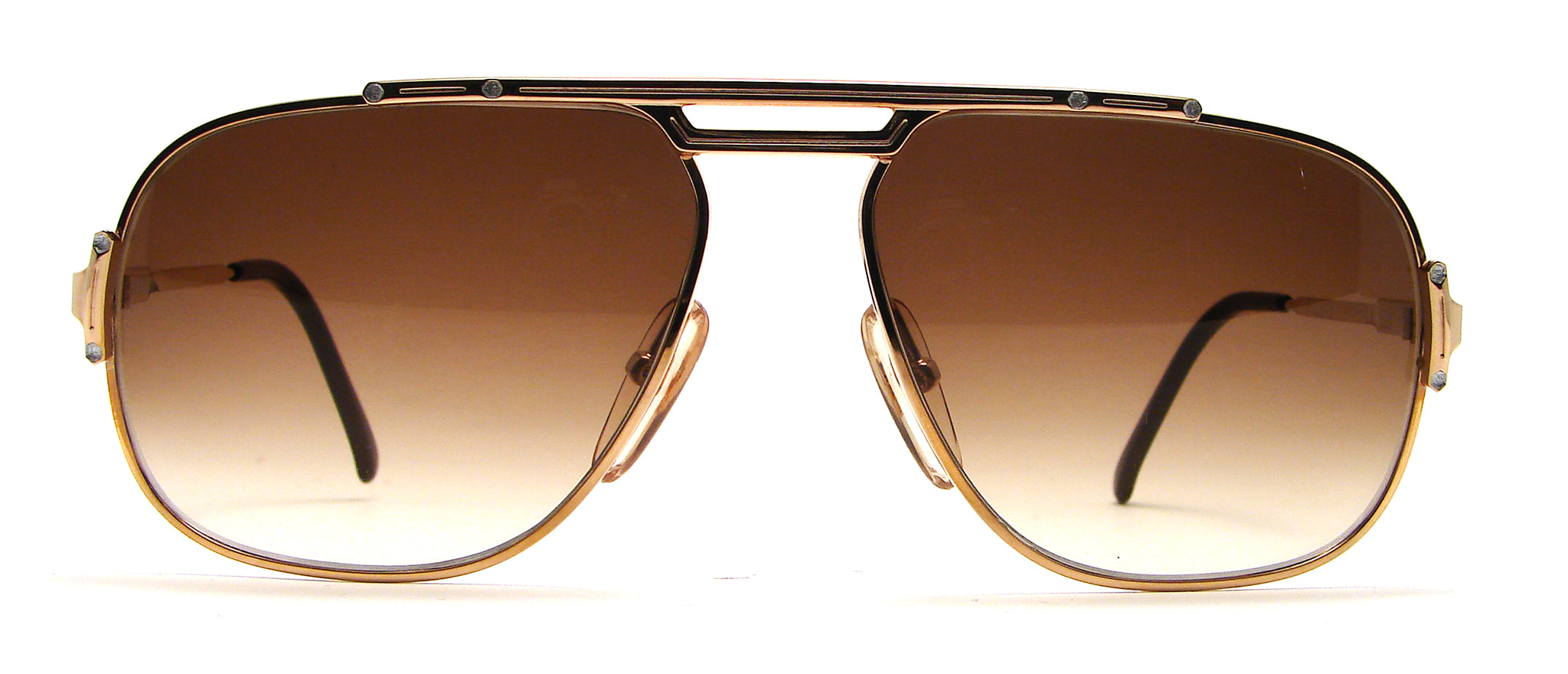 These Playboy aviators are vintage 1980s. Frames are gold-plated, with sun lenses in gradient brown.