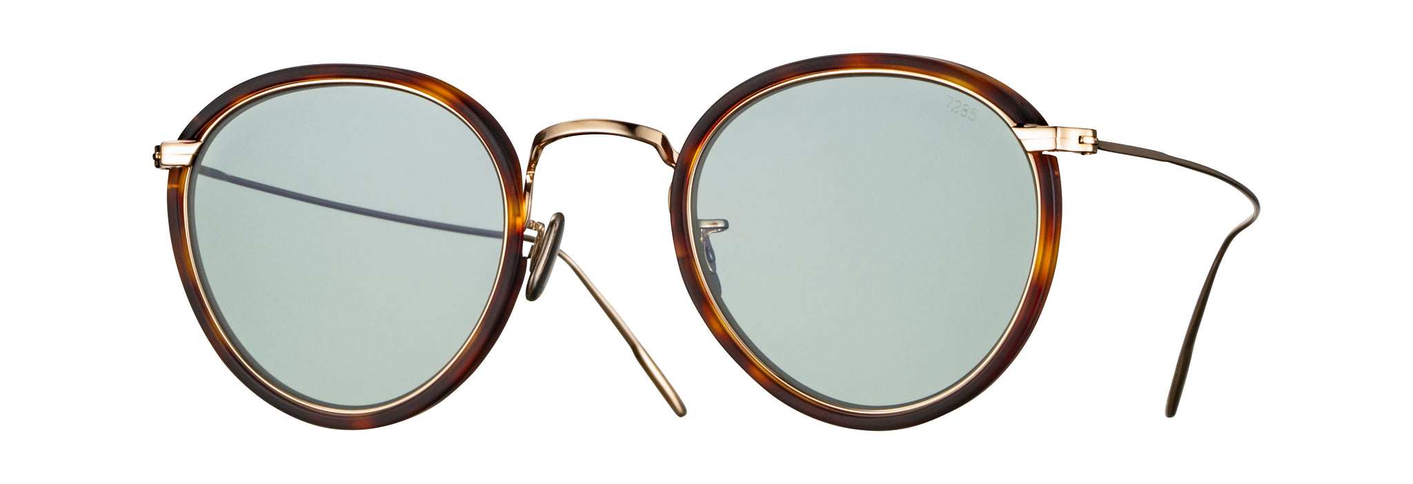 A classic Eyevan design which is a perennial favorite, these sunglasses come in brown tortoise acetate, with silver titanium detailing, and distinctively flat medium green lenses.