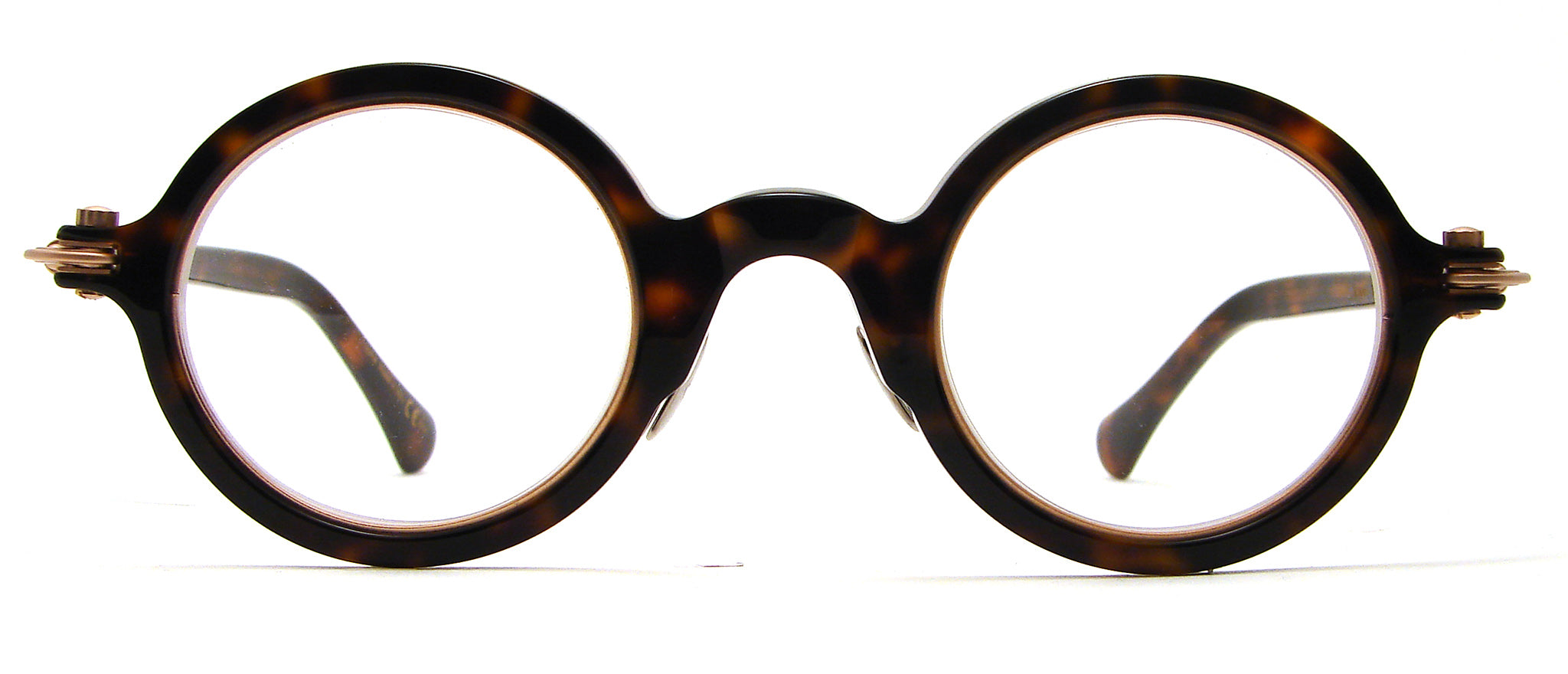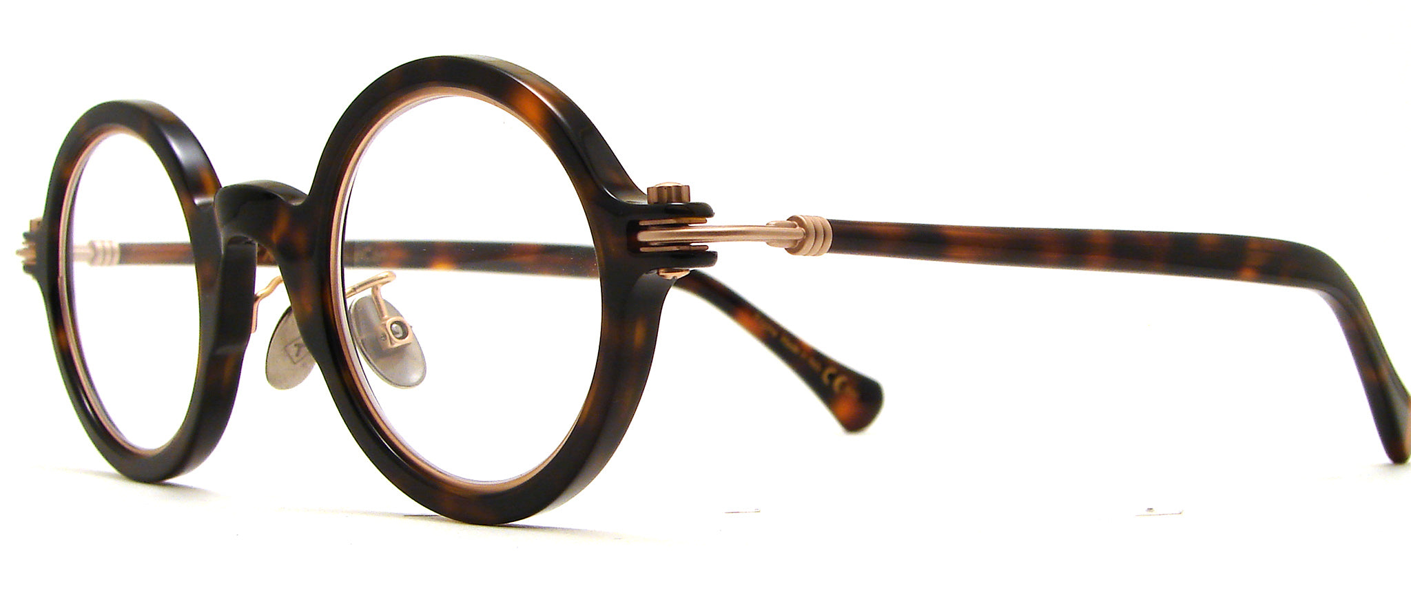 The "Scope" model by Tavat, this one in gorgeous dark brown havana with stainless steel details in gold and silver.