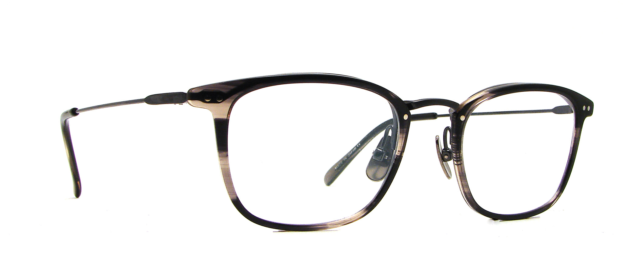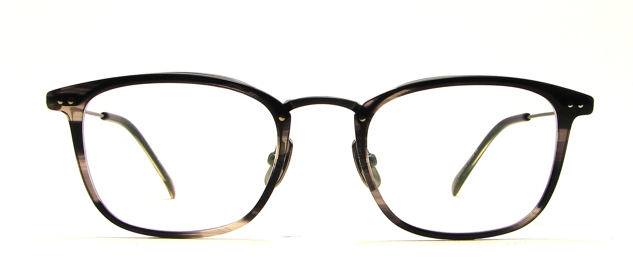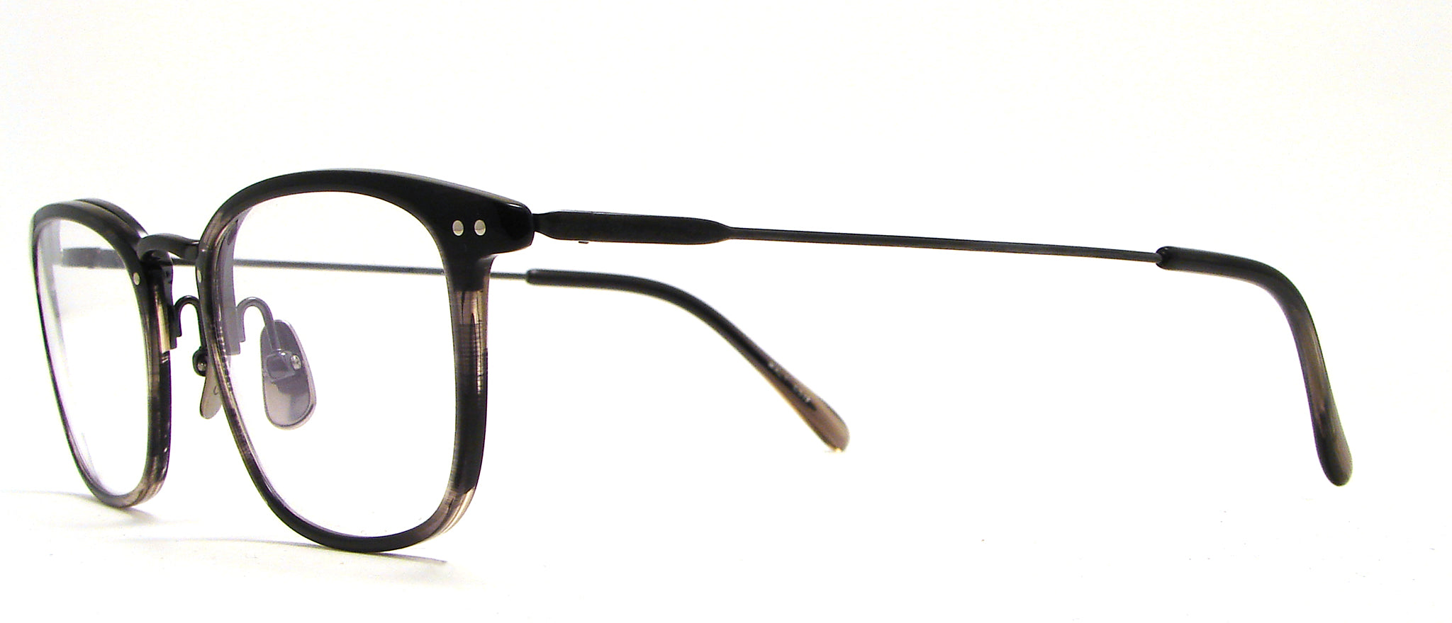 The "Walt" model by Yellows Plus. A simple shape combining titanium and acetate. suitable for a man with a larger head. Frame color is grey tortoise pattern with silver.